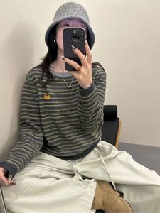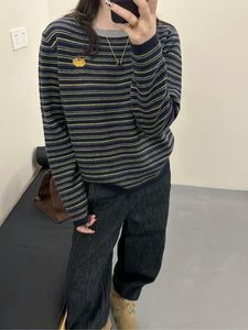 2025年秋款毛衣细针醋酸浣熊毛衣套头宽松休闲韩版条纹毛衣学院风