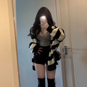2025年新款秋装韩系宽松慵懒风毛衣女春秋季条纹针织开衫外套上衣