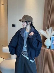 25秋冬薄棉外套宽松休闲韩版连帽格子拼接压棉上衣外套新款学院风