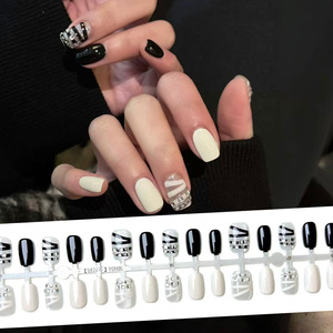黑白超短梯小众超短梯小红书爆款立体钻穿戴甲ins猫眼AB款辣妹