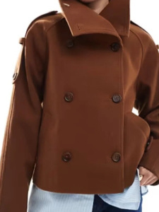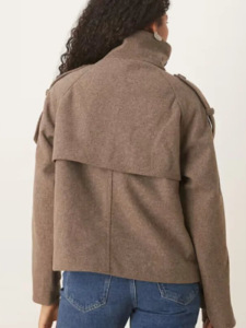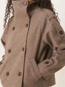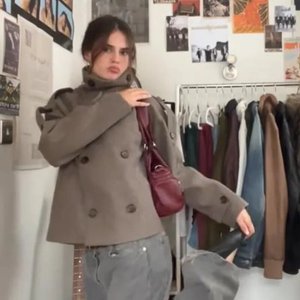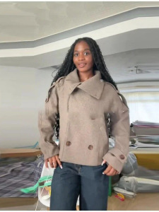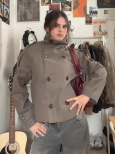 跨境欧美新品高品质毛呢女式外套2025秋冬气质双排扣立领口袋夹克