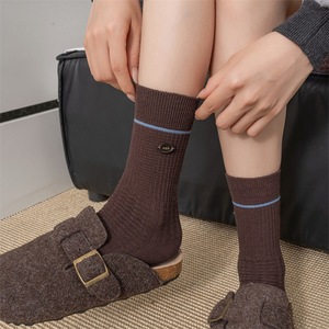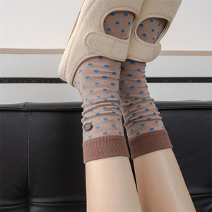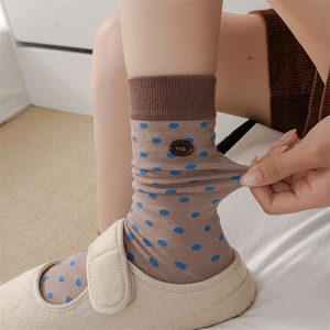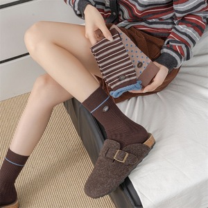 美拉德咖色系撞色中筒袜堆堆袜欧货复古波点条纹纽扣袜子女网红