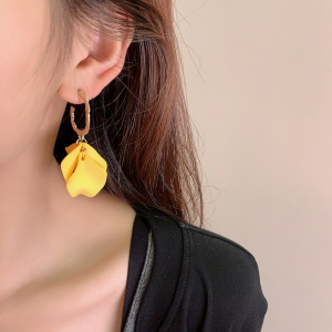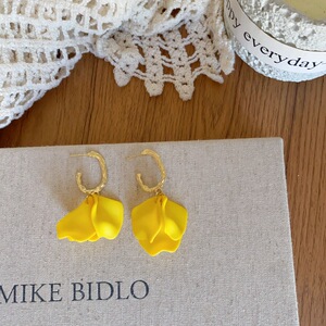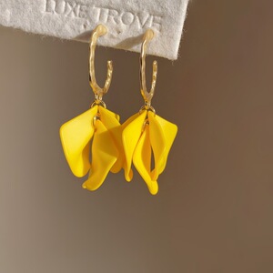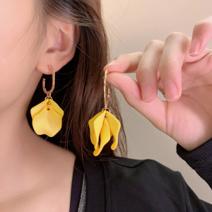 显白黄色花瓣耳环女士2025新爆款耳钉高级感轻奢小众独特漂亮耳饰