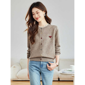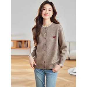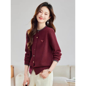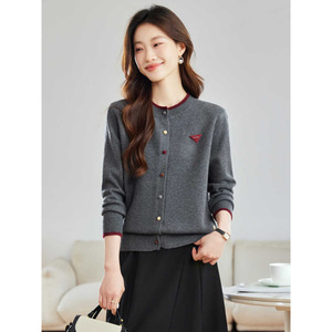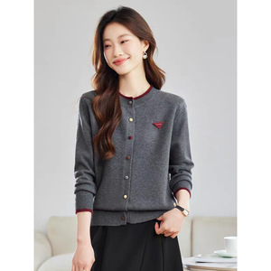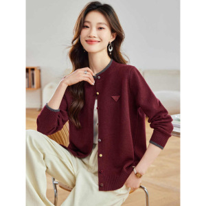 超好看彩扣圆领短款针织开衫女2025秋季新款洋气外搭薄款毛衣外套