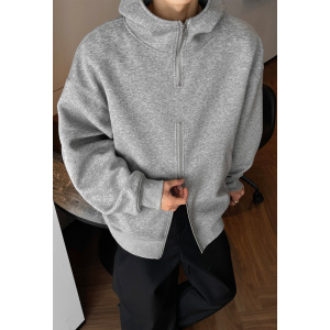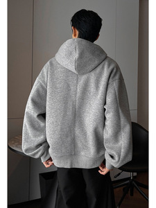 400G重磅双拉链连帽卫衣男秋季潮牌美式cleanfit灰色外套宽松上衣