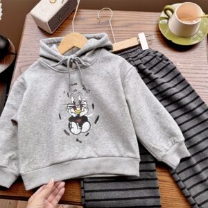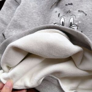 韩版儿童洋气卡通加绒套装2025冬装加厚女童连帽卫衣保暖格子长裤