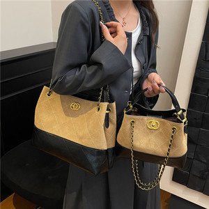 2025新款复古磨砂皮水桶包菱格复古链条包跨境热卖新品女包流行款