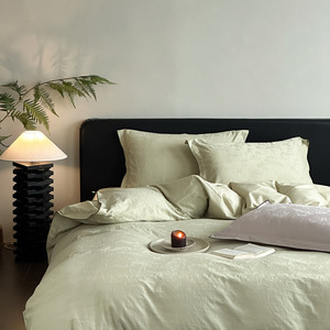 秋冬款轻奢简约风全棉磨毛四件套贡缎长绒棉水洗被套纯棉床上用品