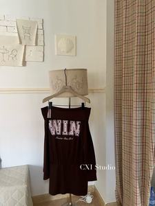CXI 辣妹一字肩卫衣连衣裙女秋季新款长袖露肩法式气质包臀短裙