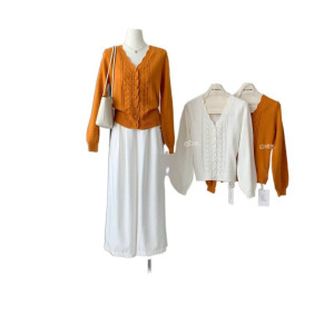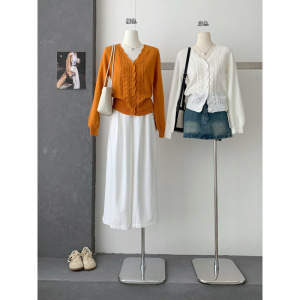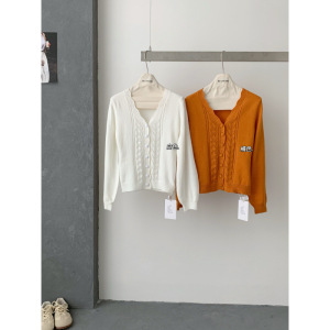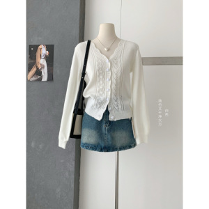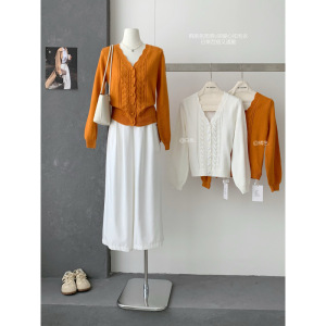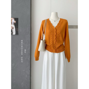 塞纳2025秋季新款V领毛针织开衫女修身显瘦外搭上衣