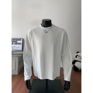 2025新款白色圆领长袖t恤男早秋穿搭宽松休闲内搭打底小领口卫衣