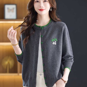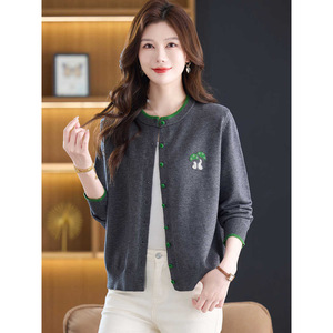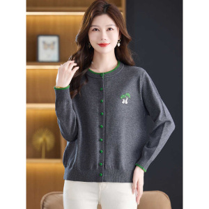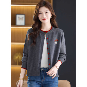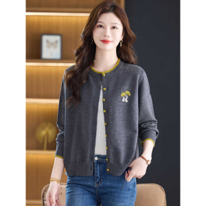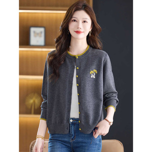 秋款上衣女时尚洋气时髦针织外搭开衫2025年新款妈妈毛衣外套短款