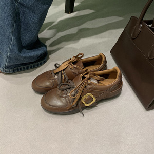 严选网红同款复古圆头双鞋带皮带扣休闲百搭德训鞋学院风厚底板鞋