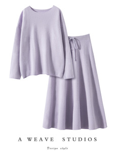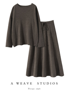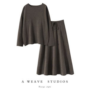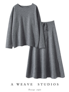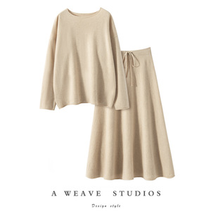秋冬新款舒适百搭女羊绒宽松显瘦毛衣裤两件套简约气质休闲裙套装