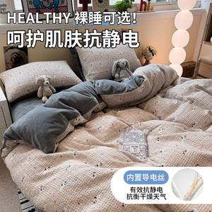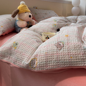 秋冬纯棉华夫格ab面牛奶绒四件套床上被套全棉加绒床单床笠款床品