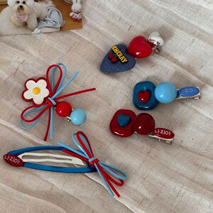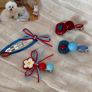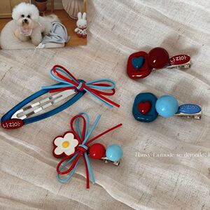 韩系甜美蝴蝶结红蓝撞色发夹女百搭边夹侧边夹碎发bb夹刘海夹发饰