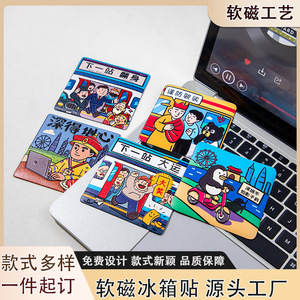 新款卡通创意谐音创意城市软磁冰箱贴ins风个性创意diy磁吸冰箱贴