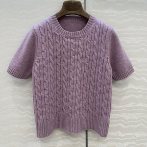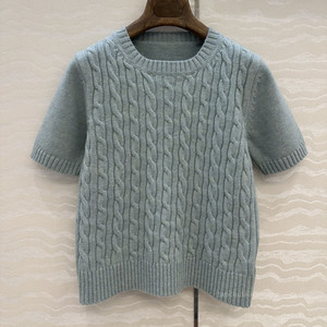 纯色麻花设计圆领毛衣女 减龄少女风显瘦百搭短袖上衣早秋AT82776