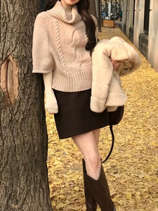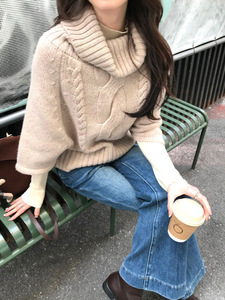槿一 麻花针织套头斗篷羊毛混纺毛衣女秋冬宽松高领慵懒保暖百搭