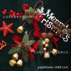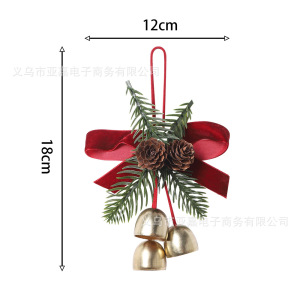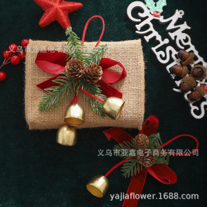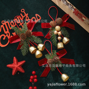 圣诞节小铃铛挂件红色丝绒蝴蝶结圣诞树松果场景布置家居装饰挂饰