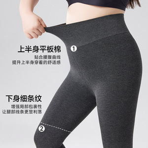 秋冬纯色打底裤一线档细竖条纹连裤袜外穿薄款高弹显瘦大码女裤子