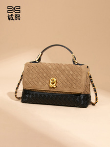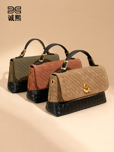 跨境秋冬新款手提信封包质感潮流磨砂手工编织女包休闲单肩斜跨包