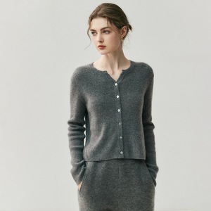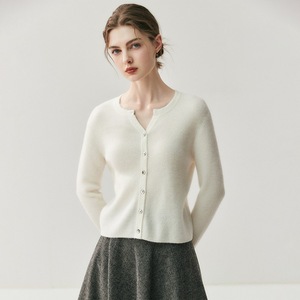 老钱风山羊绒针织开衫女短款上衣修身显瘦毛衣秋冬新款女装外套