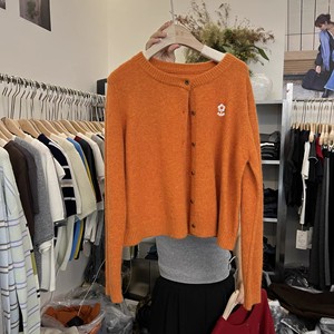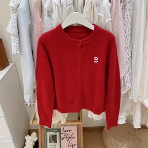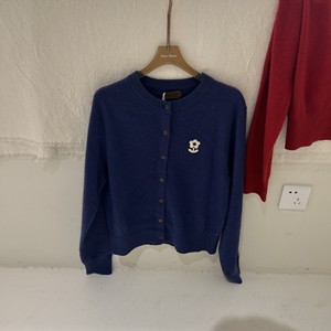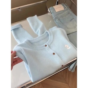 感温柔蓝色朵花刺绣软糯毛衣外套女秋冬时尚针织开衫上衣