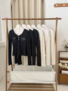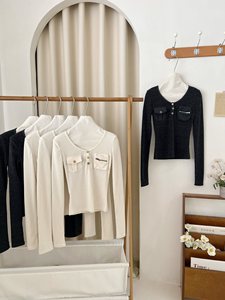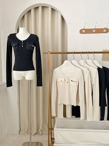 复古拼接打底上衣女冬内搭口袋精致修身长袖显瘦针织衫