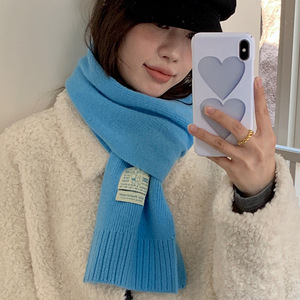 韩版全羊毛贴布小围巾2025新款百搭男女冬季保暖高级感针织围脖