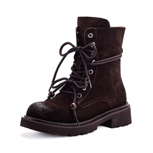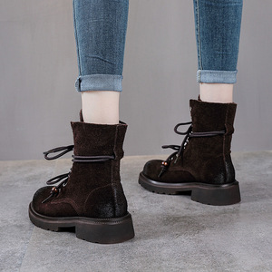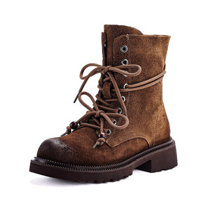 复古马丁靴女秋冬季新款时尚短筒女靴子系带圆头真皮短靴