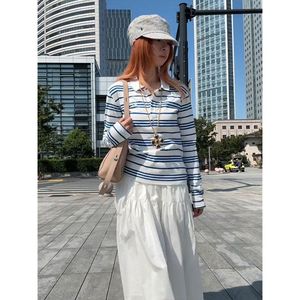 韩系撞色条纹学院风POLO领长袖t恤女秋季2025新款宽松慵懒风上衣