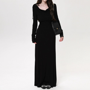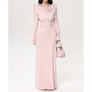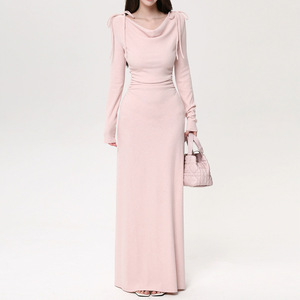秋日韩味一裙三穿 蝴蝶结荡领三穿抽褶弹力针织连衣裙2025秋季新
