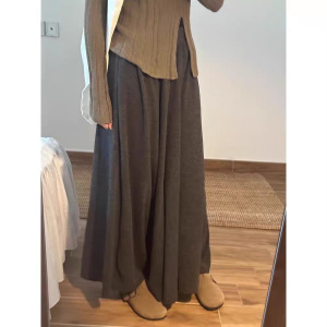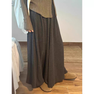 2025大码深灰色糯米裙裤女秋季梨型身材胖妹妹宽松显瘦垂感阔腿裤
