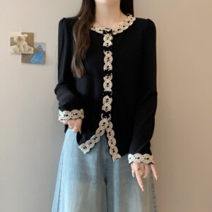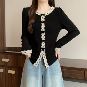 实拍2025秋装新款胖mm大码法式气质蕾丝花边T恤法式内搭上衣80456