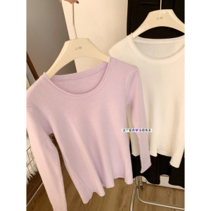 塞纳 春秋超好穿圆领多色打底衫女2025新款百搭修身显瘦长袖T恤女