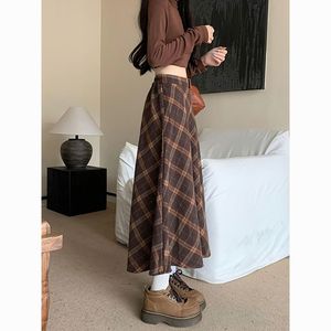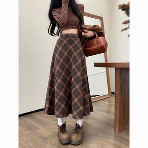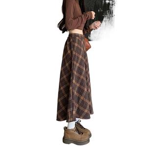 格子半身裙女毛呢复古A字长裙2025秋冬季新款格纹半裙子咖色显瘦
