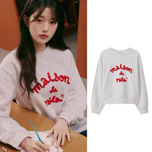 韩国小众潮牌rolarola卫衣女秋冬款张元英同款字母刺绣圆领上衣