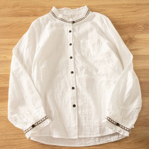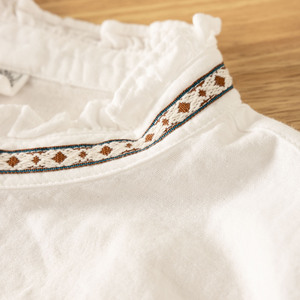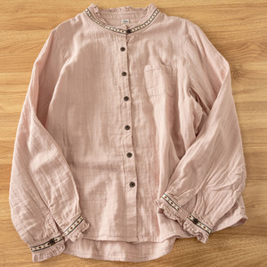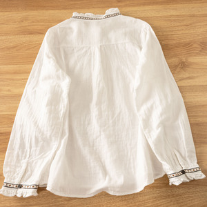 复古刺绣木耳领双层棉纱长袖衬衫女秋季新款法式文艺柔软亲肤上衣