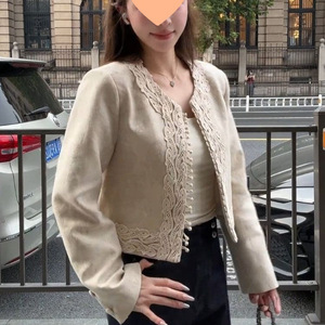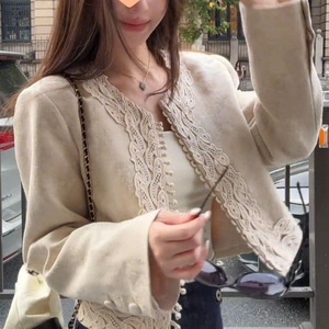 蕾丝法式优雅早秋设计2025短外套感气质轻薄新款时尚感卡其色