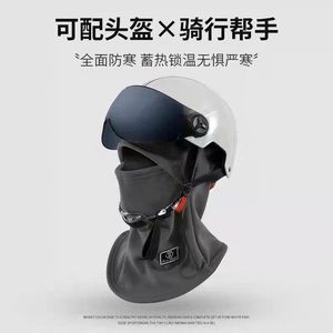 冬季加绒保暖骑行帽女电动车防风防寒面罩头盔内胆围脖一体帽子男