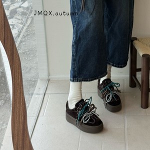 厚底休闲鞋松糕底增高 2025秋季新款真皮女士板鞋韩版百搭复古潮.