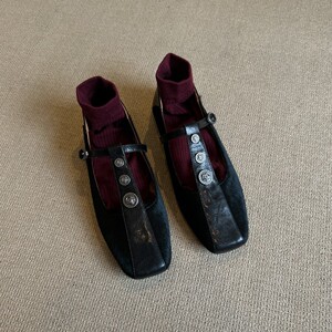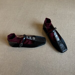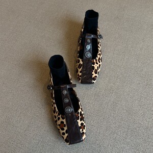 羊皮版~复古方头豹纹一字扣平底玛丽珍鞋小皮鞋金属扣浅口单鞋女