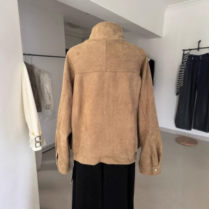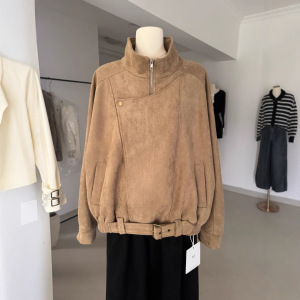 2025秋季新款复古棕色宽松水洗麂皮肌理感机车夹克外套女上衣