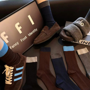 秋冬复古藏青色棕色仿双针中筒堆堆袜棕色袜子女显贵高级感百搭袜