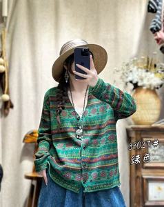 棉线毛衣女2025年秋季新款宽松大码遮肉印花休闲百搭针织线衣开衫