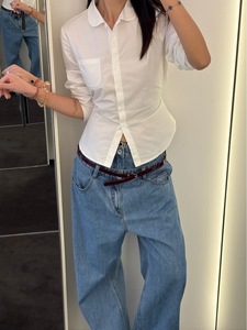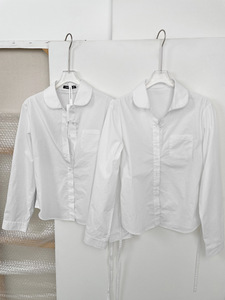 RA新品甜美娃娃领系带衬衫叠穿内搭纯色百搭休闲长袖上衣南油女装