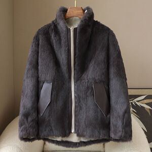 2025秋冬新款女式韩版休闲兔毛内胆双面穿短款尼克服皮草保暖外套