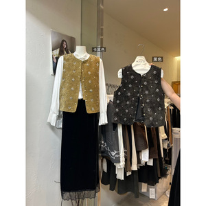 MSTUDIO漫莎-半盏山茶新中式国风撞色刺绣微闪丝绒马甲马甲c6137