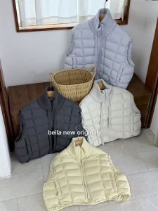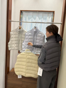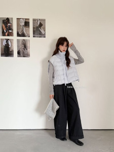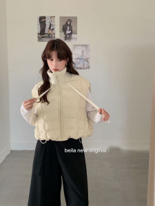 高端羽绒马甲女短款2025冬季新款韩版宽松针织立领90白鸭绒外套